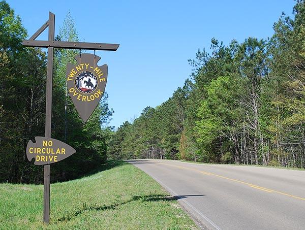 Points of interest along the parkway, which stretches from Nashville to Natchez, include Twentymile Bottom Overlook, Dogwood Valley, and Oldtown Overlook.